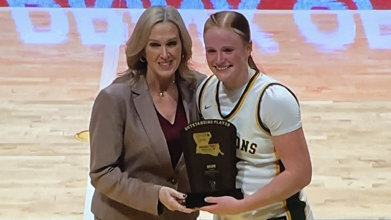 “I don’t even know,” the Northwestern State signee laughed on LHSAA Network’s postgame broadcast. “I just knew there was three seconds left, my teammate passed me the ball, and it’s not easy whenever you have a 6-(foot)-3 girl coming right at you with her hands up. I literally just threw the ball as hard as I possibly could and just attempted to make that shot.”