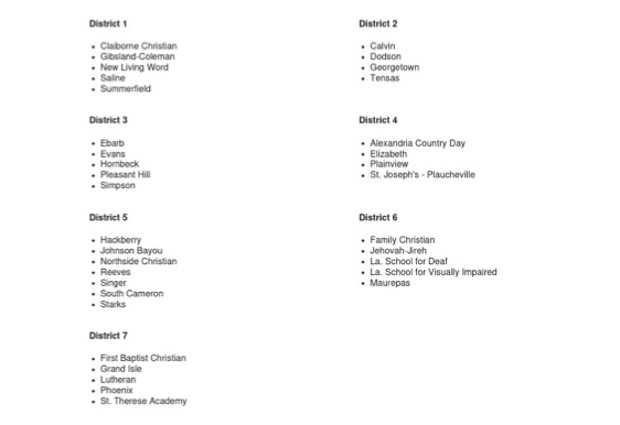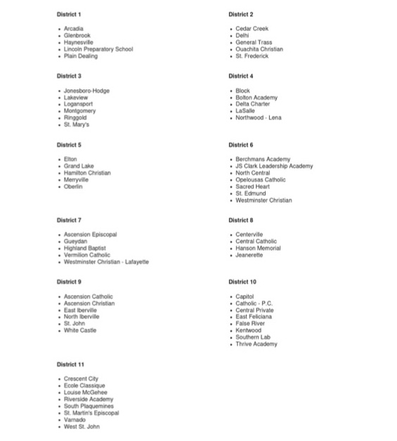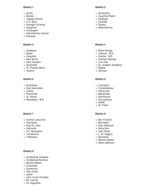 - Carencro (from 5A), LRCA (from 2A) join Cecilia, Opelousas district (as opposed to Teurlings, Westgate)